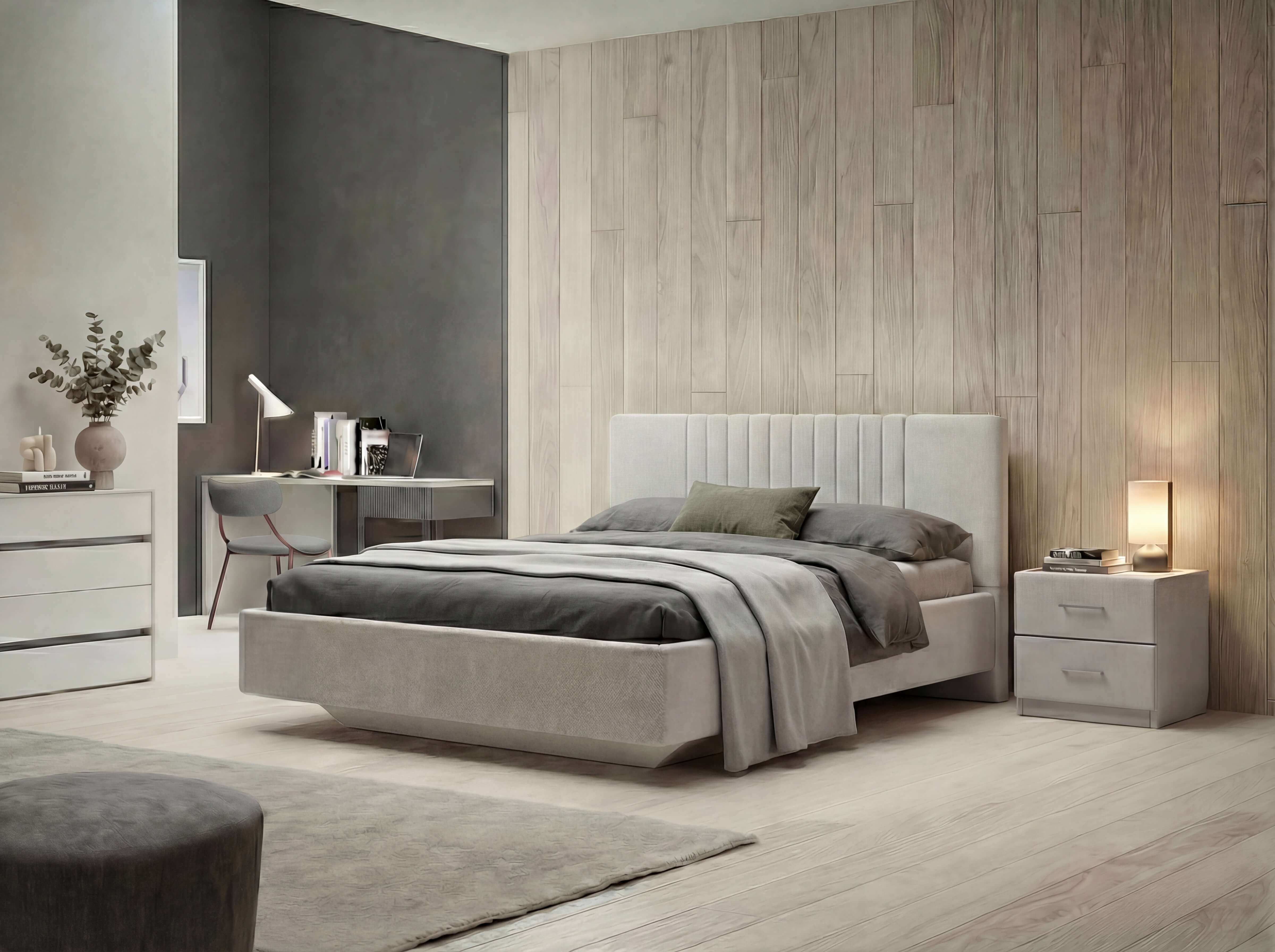 Интерьерная кровать — где стиль встречается с комфортом. Благодаря своей конструкции, создаётся эффект «парения» — как будто кровать не касается пола. При этом, внутри находится подъёмный механизм с вместительным бельевым коробом. Это позволяет эффективно использовать каждый сантиметр пространства — хранить постельное бельё, одеяла или сезонные вещи. Форма, материалы и отсутствие лишних деталей делают эту кровать идеальным решением для интерьеров в стиле минимализм или современном. Кровать подчеркивает пространство — становясь выразительным акцентом.